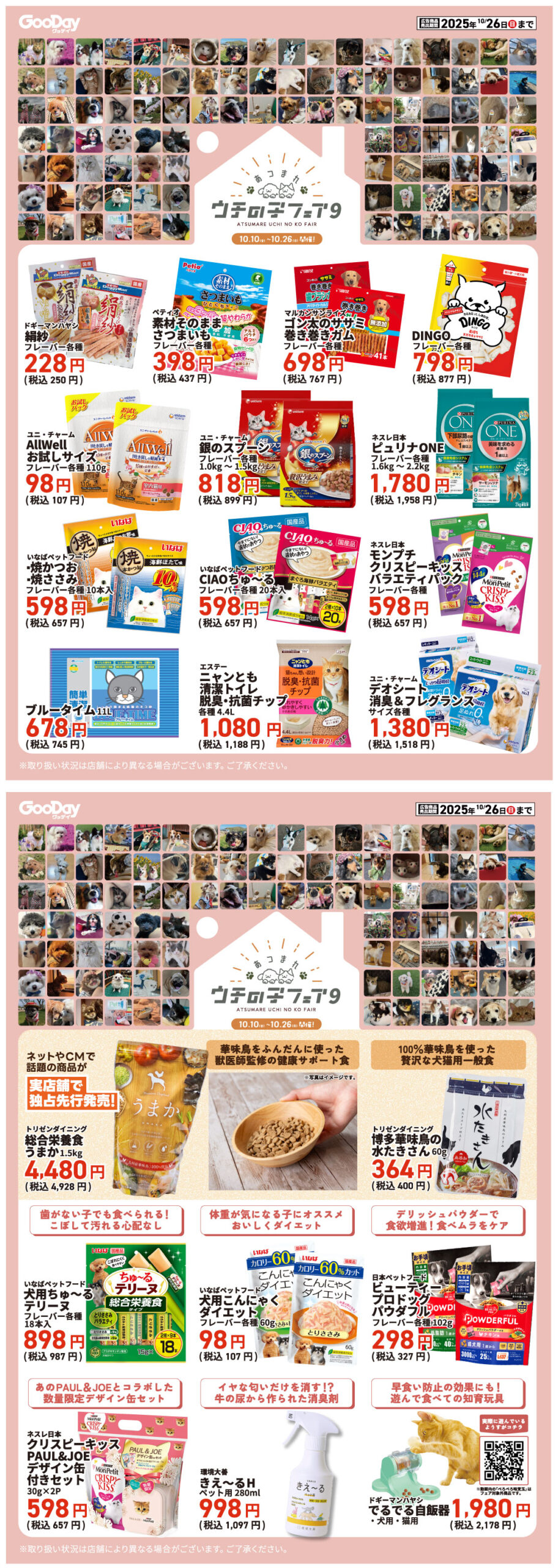 毎シーズン好評の『あつまれウチの子フェア』開催! ぜひお近くのグッデイでお買い求めください! チラシ紙面を今すぐチェック▼