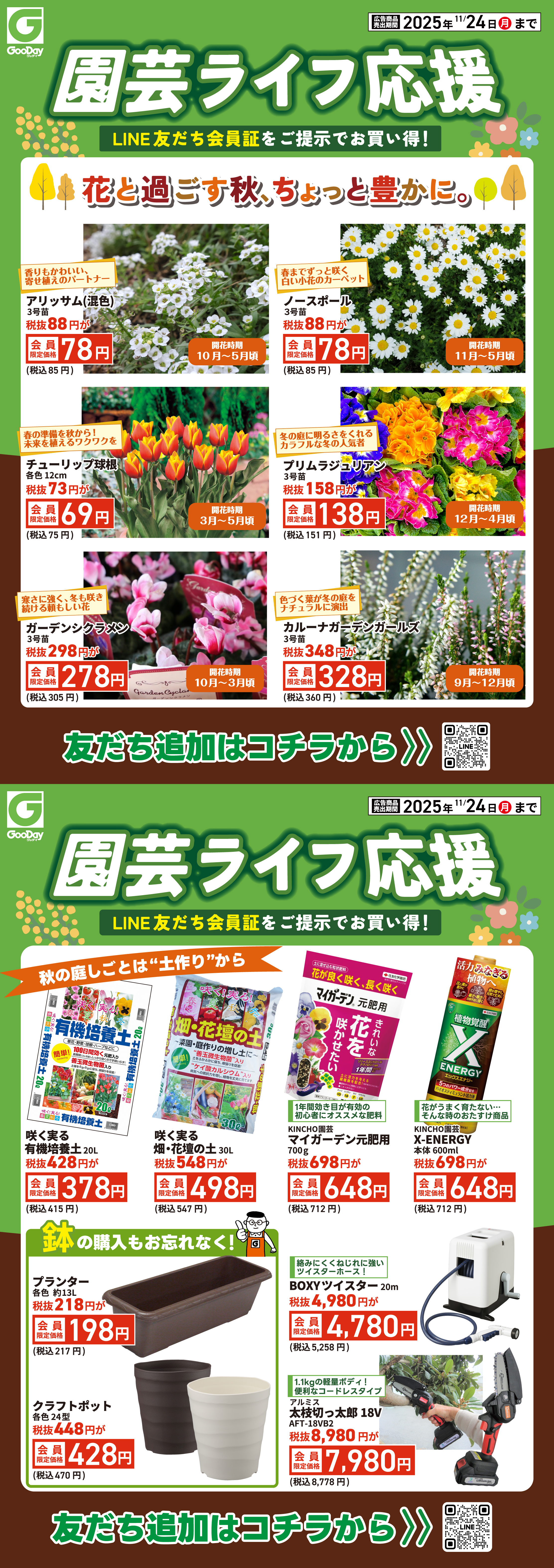 【LINE友だち会員証】のご提示で、 園芸・ガーデニングのおすすめアイテムがお買い得に! 対象商品は今すぐ紙面をチェック▼