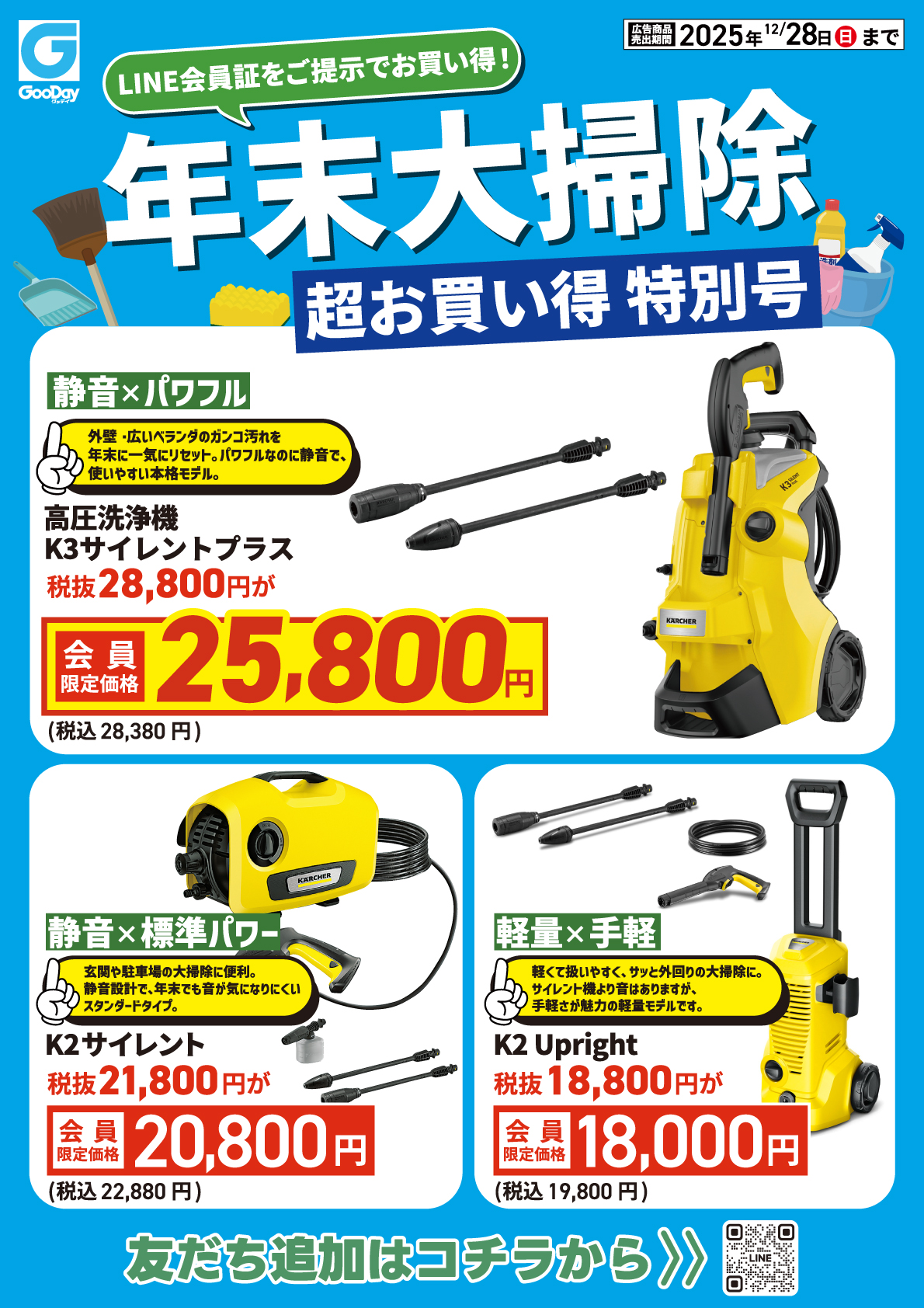 【LINE友だち会員証】のご提示で対象商品が超お買い得に! 大掃除に大活躍間違いなしの【ケルヒャー】のアイテムがお得に! 「詳細」から今すぐ紙面をチェック▼